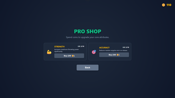 - RPG Progression: Earn Coins by sinking birdies, eagles, and aces. Visit the Pro Shop to upgrade your Strength (max distance) and Accuracy (reduce release wobble).